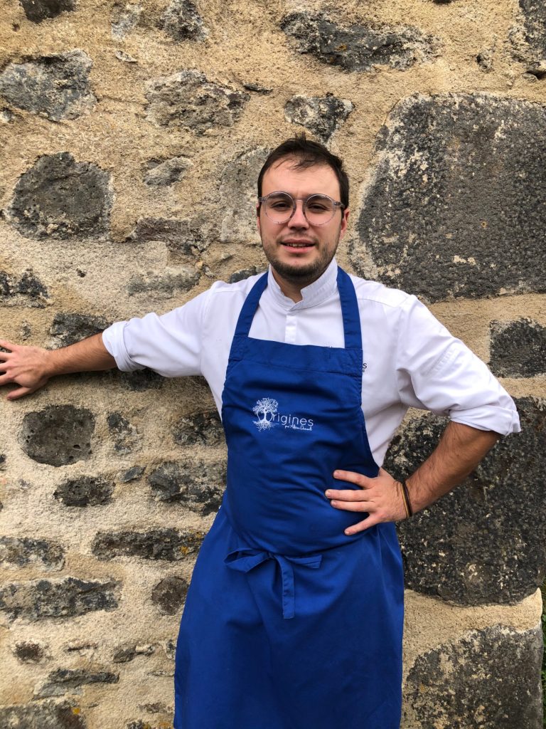 Le lieu est magique, offrant depuis la grande salle panoramique et vitrée, une vue splendide sur le paysage de l’Auvergne en majesté, la verte chaîne des puys, le voisin château fort du Broc, le proche village médiéval aux abords d’Issoire. Adrien Descouls, jeune et dynamique trentenaire, ex concurrent Top Chef, qui a travaillé notamment à Lezoux au château de Codignat, chez Têtedoie à Lyon, au George V à Paris avec Eric Briffard et Christian Le Squer, a investi bravement dans cet OVNI qui cousine, avec son armature de fer rouillé se mariant au béton, mais aussi à la pierre ancienne, avec le Couffour de Serge Vieira (son architecte est le même). La démarche, celle du cheminement sur les sentes d’Auvergne, ramassant herbes et produits d’ici, cousine encore avec celle des Bras et des Marcon, dont Adrien Descouls apparaît comme un petit cousin fidèle. De fait, tout ce qu’il propose, dans un cadre qui colle avec le paysage, non sans grandeur, n’est pas indigne de ces grandes références, fondatrices d’une nouvelle cuisine du Massif Central et de ses lisières. Un « futur grand » à suivre!