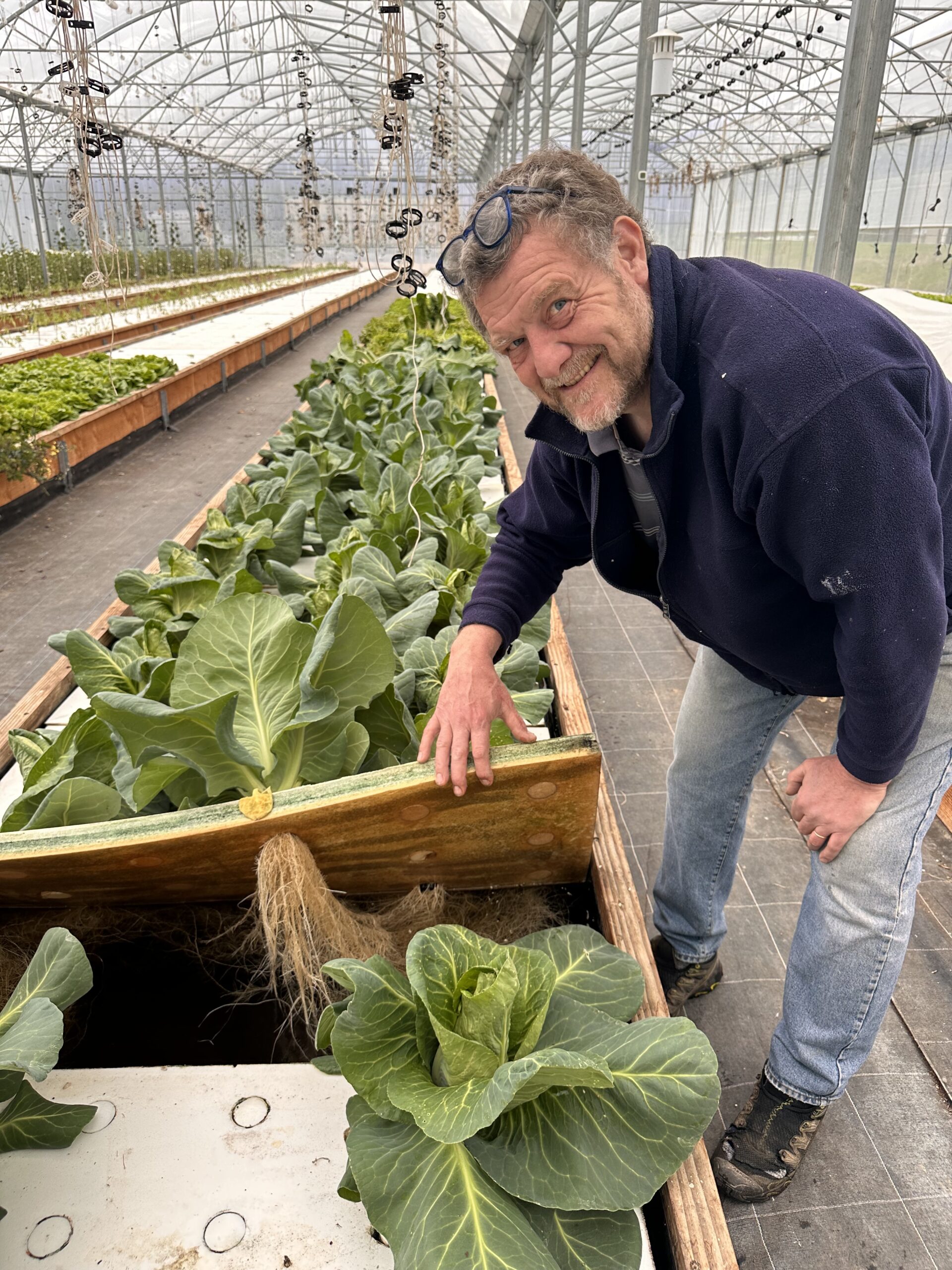 Après des vies actives à travers le monde (lui était dans le pétrole), Hélène et Michel Peter ont créé une ferme singulière où ils élèvent des truites arc en ciel, tout en réutilisant l’eau des poissons pour faire pousser légumes et plantes aromatiques. Les culture végétales, fixées sur des « radeaux » flottent ainsi sur une eau riche en nutriments. Les racines des plantes absorbent les oligoéléments, purifiant l’eau qui peut revenir dans les bassins d’élevage pour un nouveau cycle. Ils réduisent ainsi près de 80 % la consommation d’eau par rapport au maraîchage traditionnel.